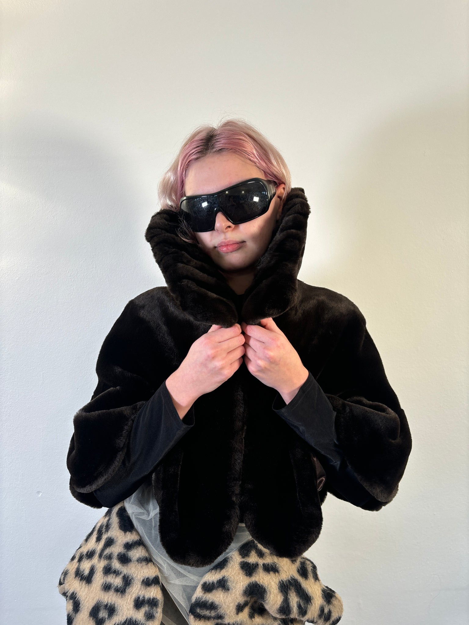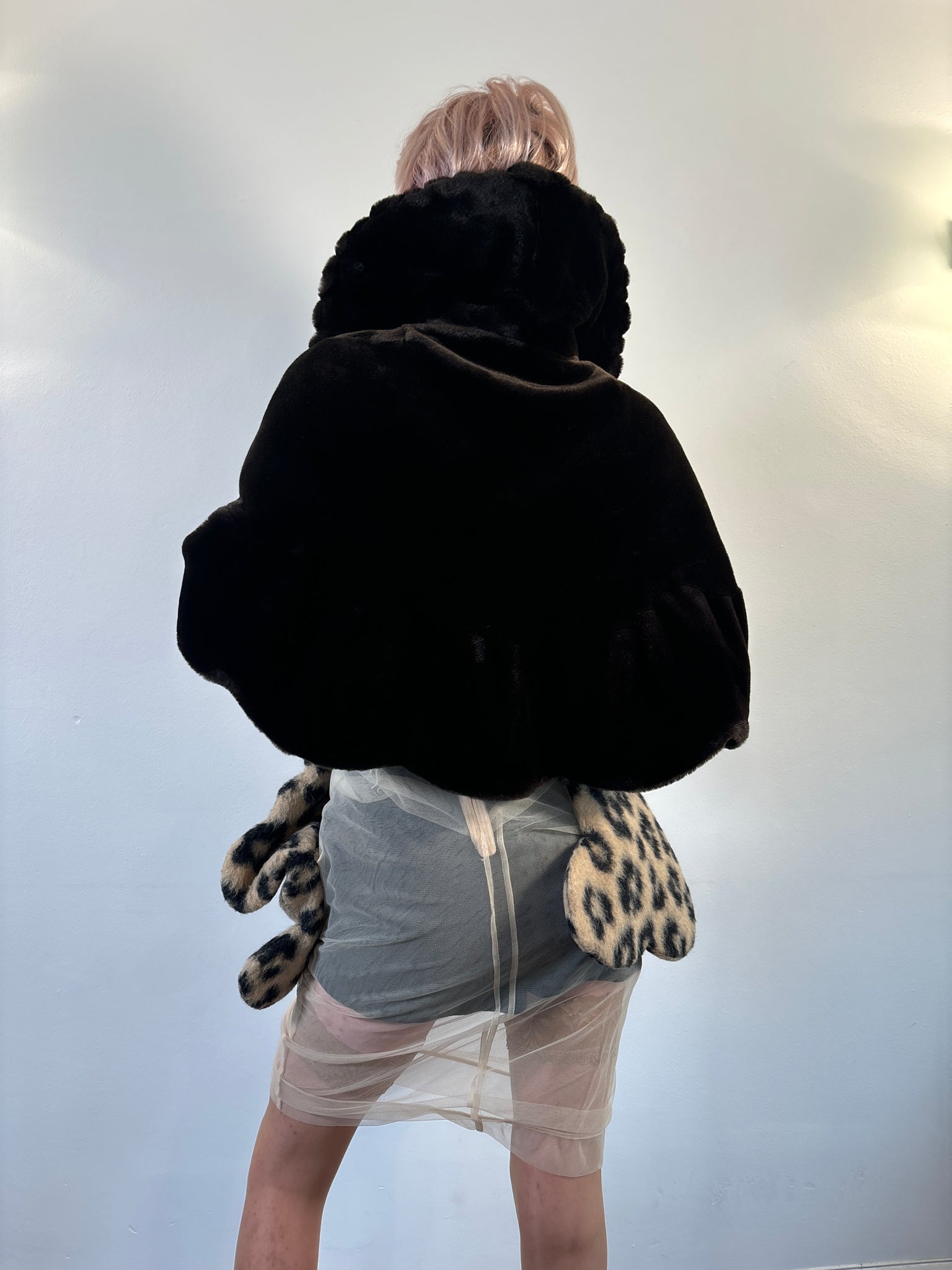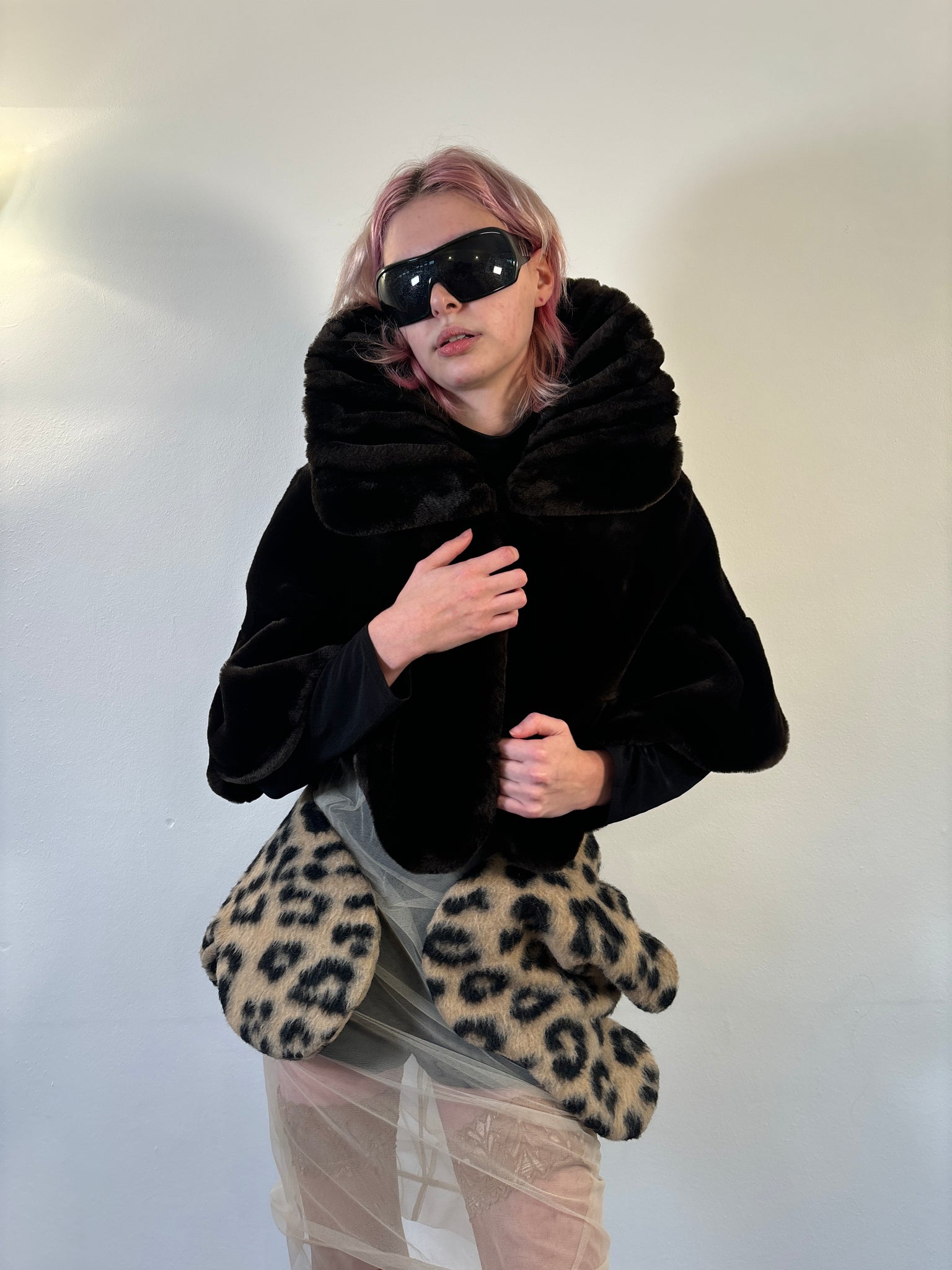 Vintage 90s Aftershock Black Faux Fur Crop Cape