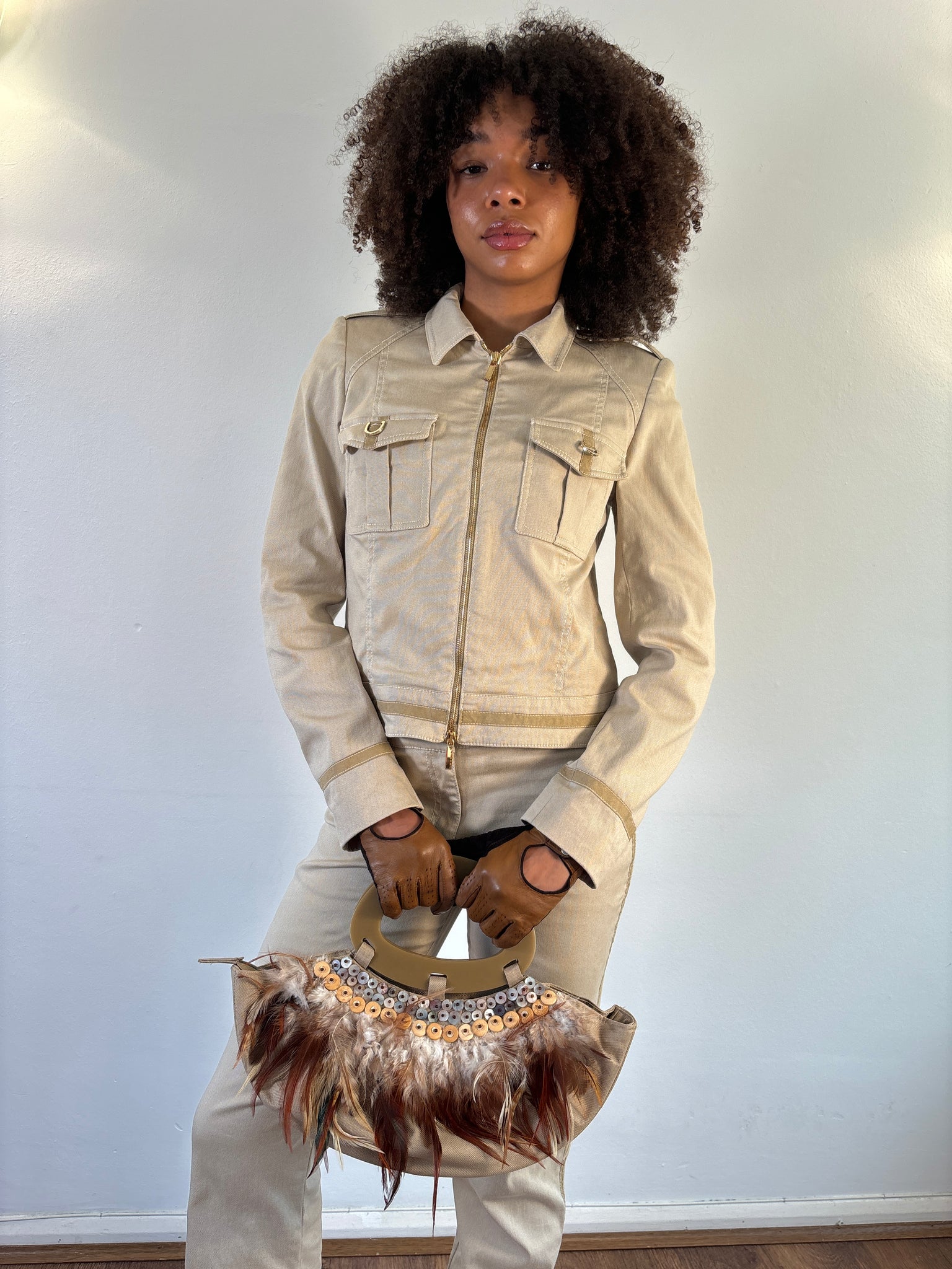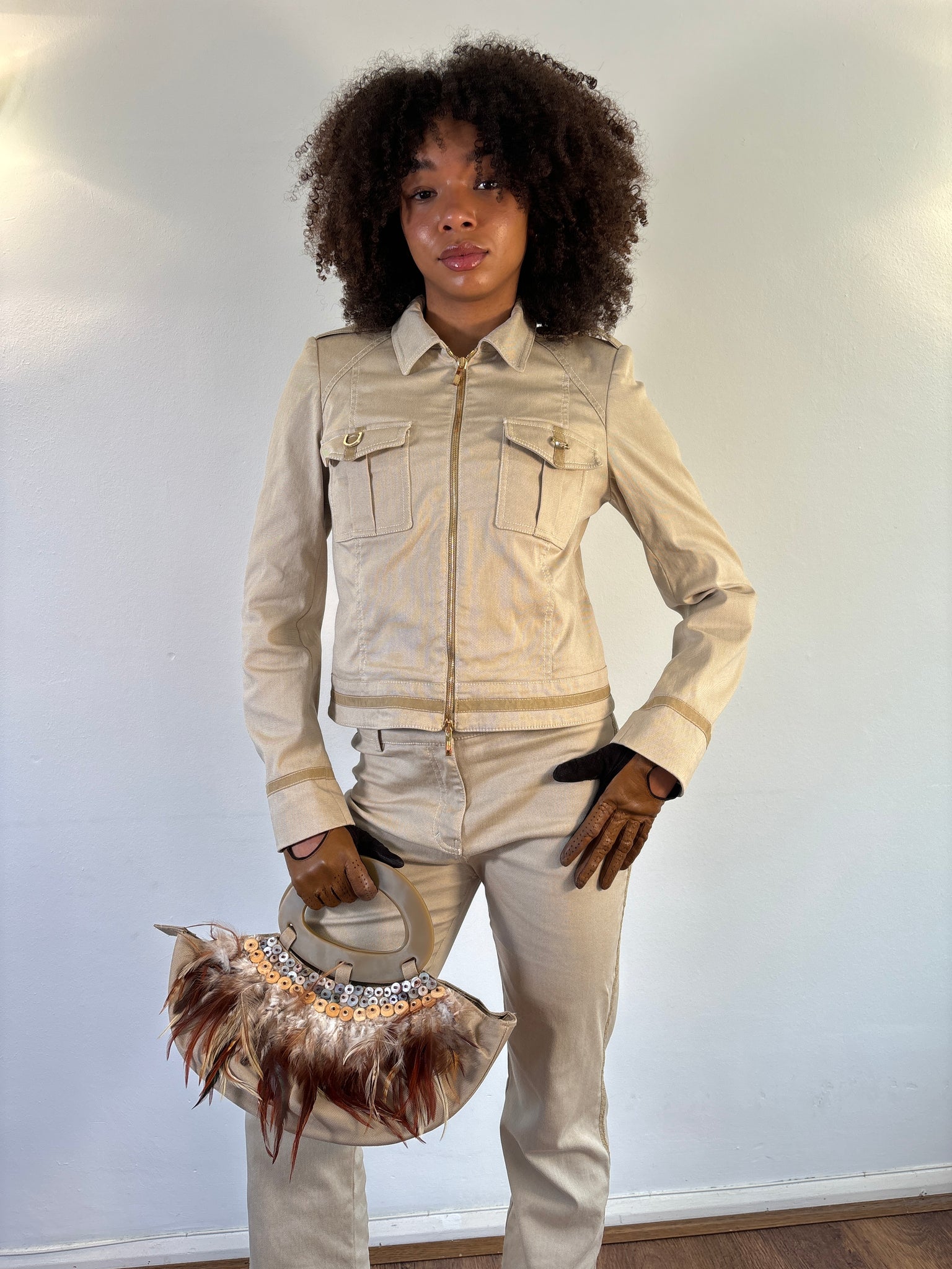 Vintage Y2K Karen Millen tan trouser and jacket suit