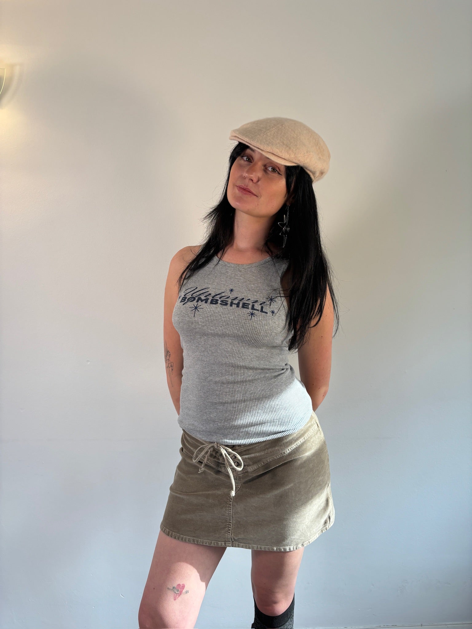 Vintage Y2K Velvet Beige Lace up Mini Skirt
